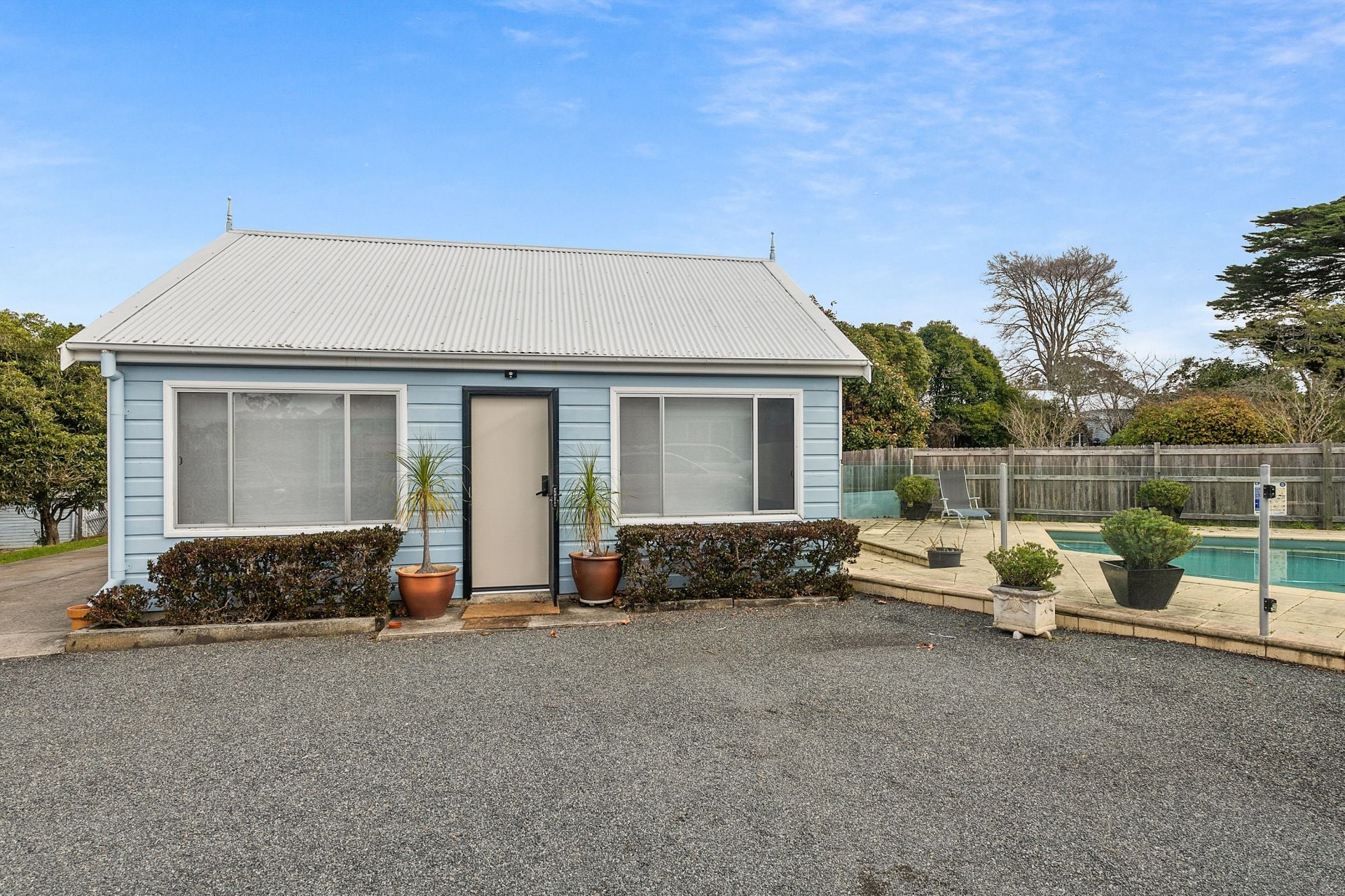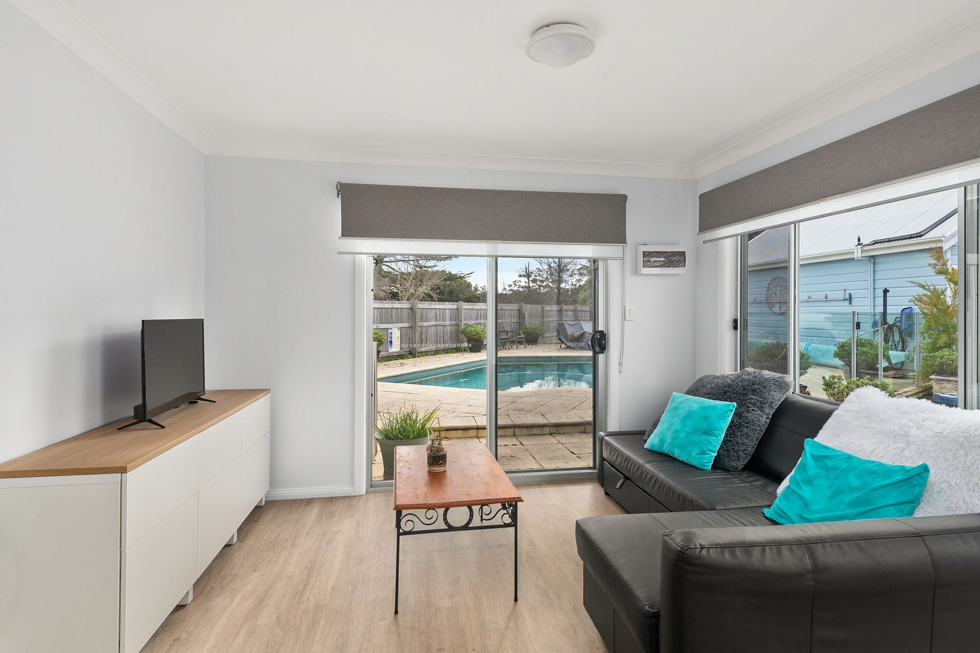 – Open plan living with door out to the pool