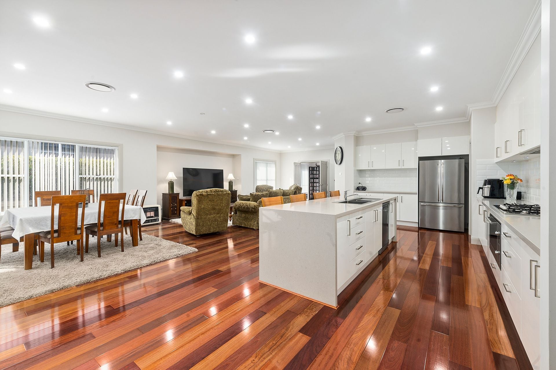 – The expansive open-plan living and dining area offers seamless flow to a fully enclosed patio, creating the perfect space for hosting in any season.