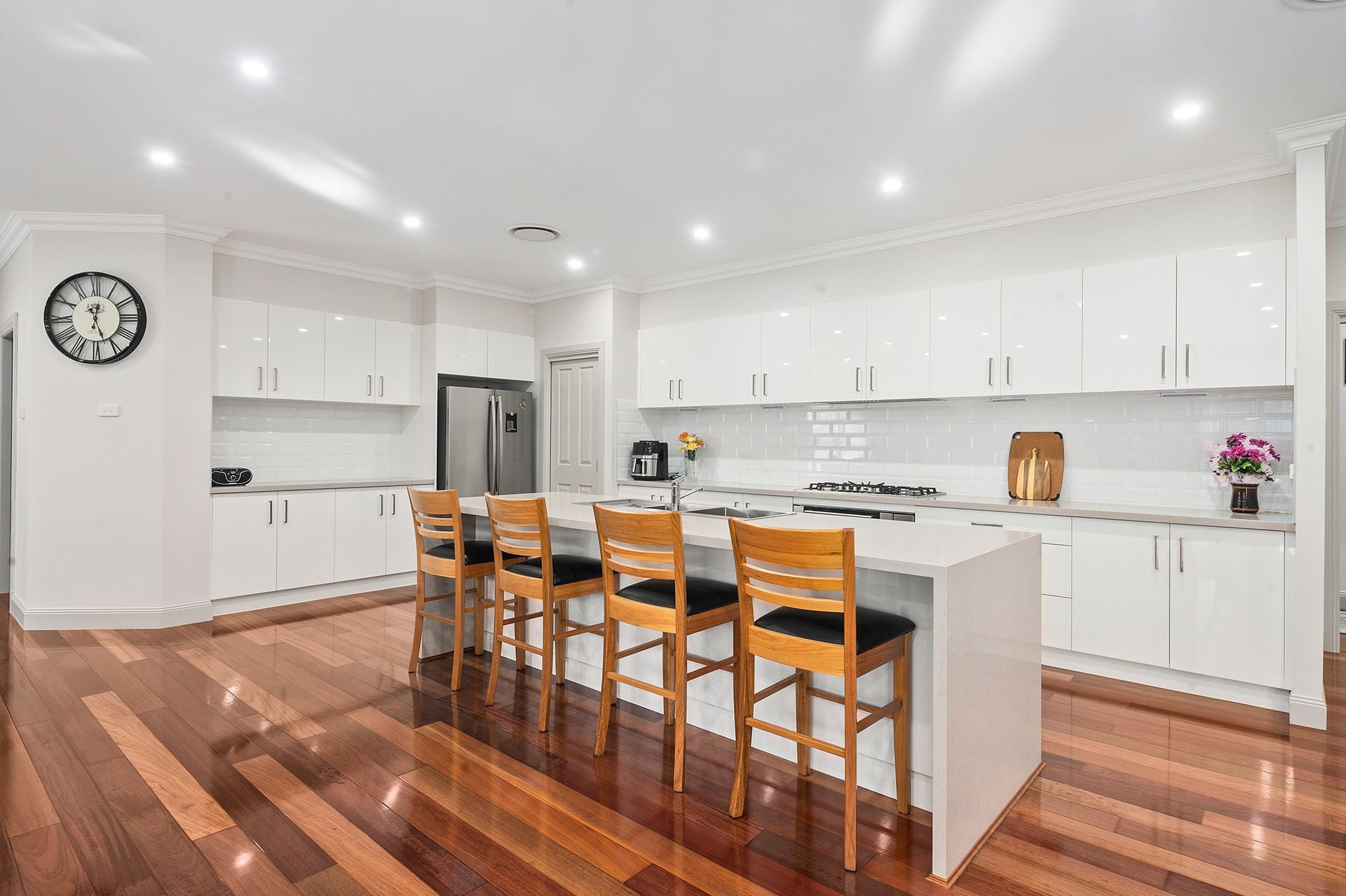 From the wide entry hallway and rich hardwood floors to the open-plan spaces and enclosed outdoor entertaining, every detail has been thoughtfully considered for the modern family.