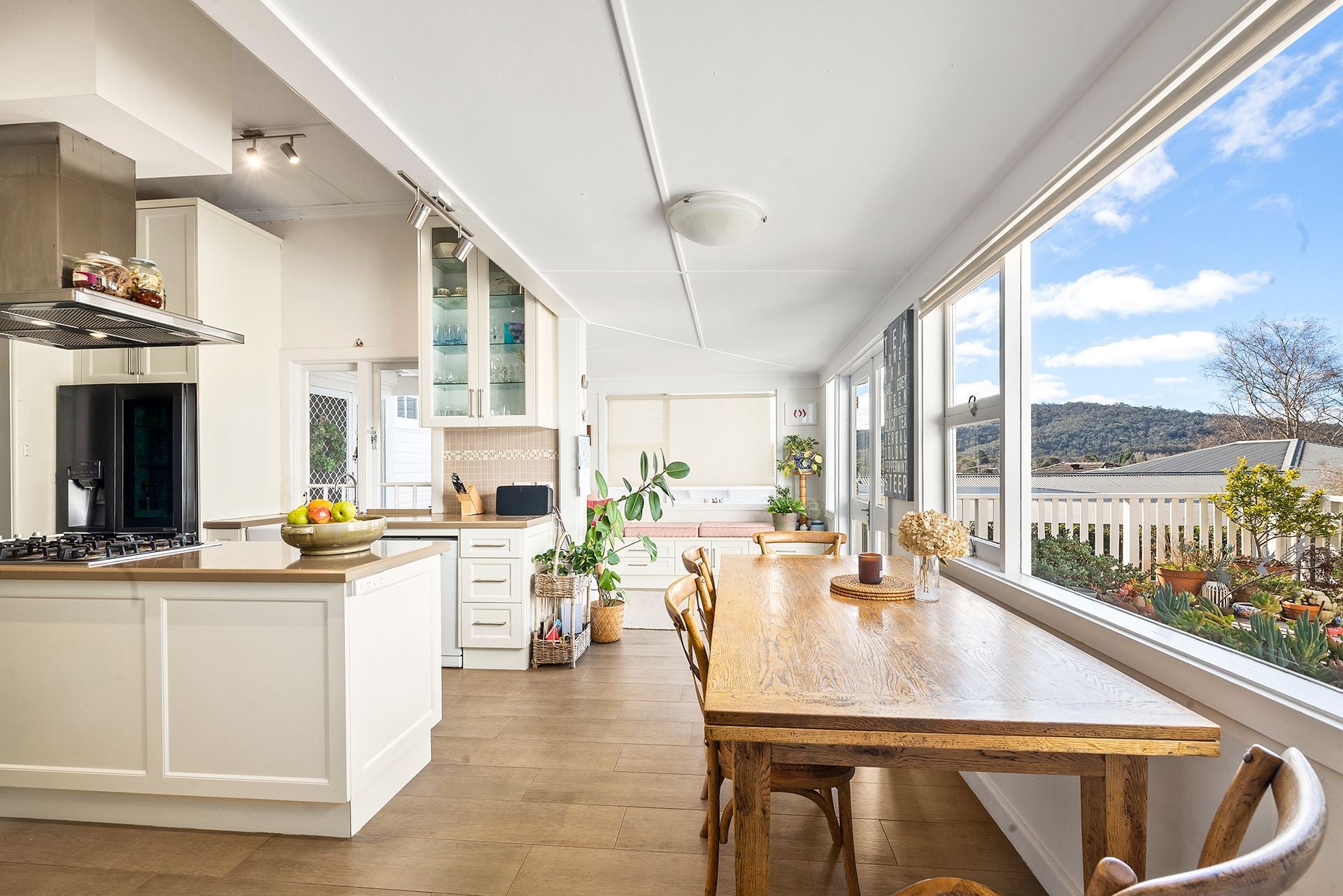 A thoughtfully designed extension introduces a state-of-the-art kitchen equipped with premium Miele appliances, extensive built-in storage, and a stylish integrated dining nook. This space flows seamlessly onto an expansive east-facing deck with breathtaking panoramic views, an idyllic setting for morning coffee or effortless entertaining.