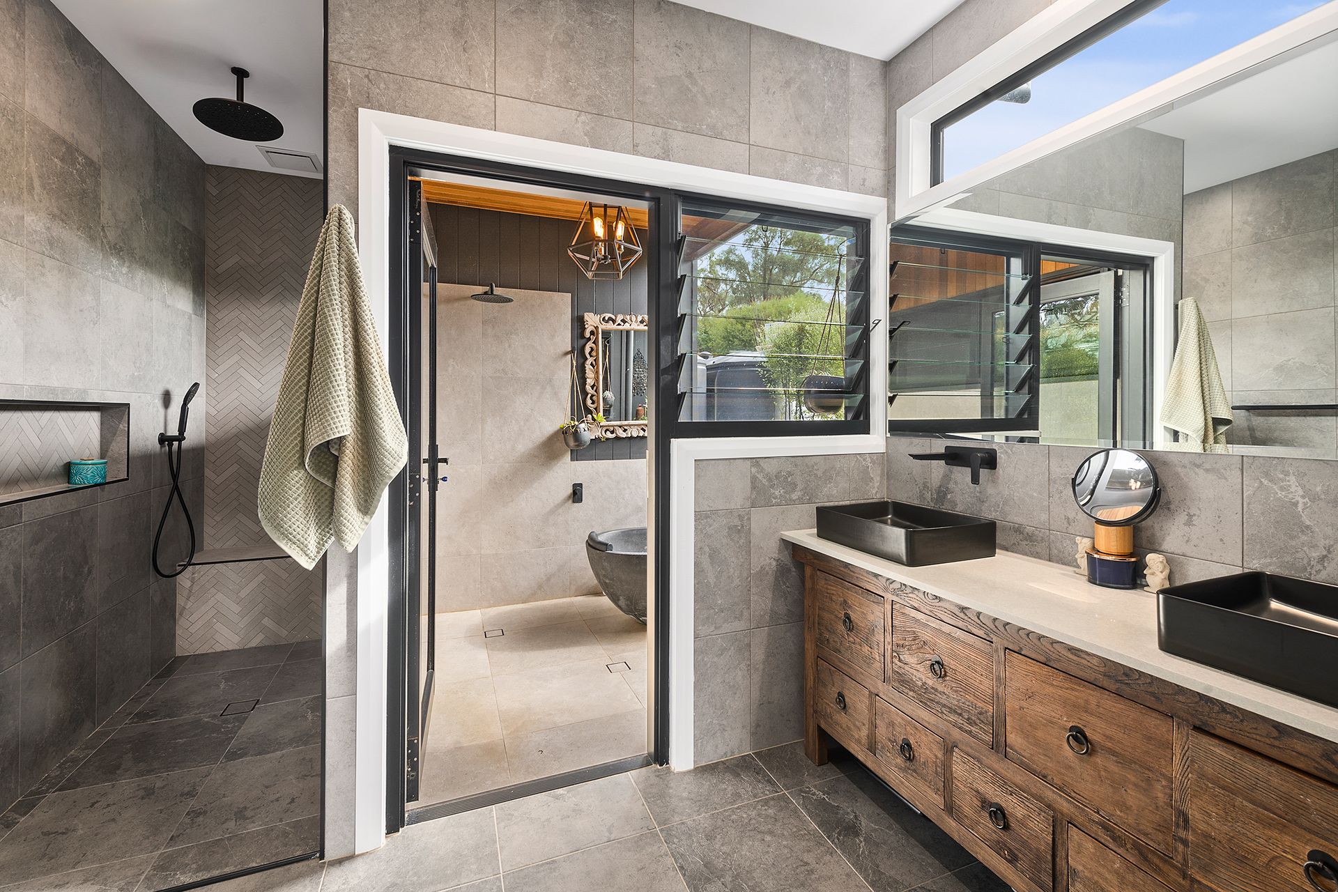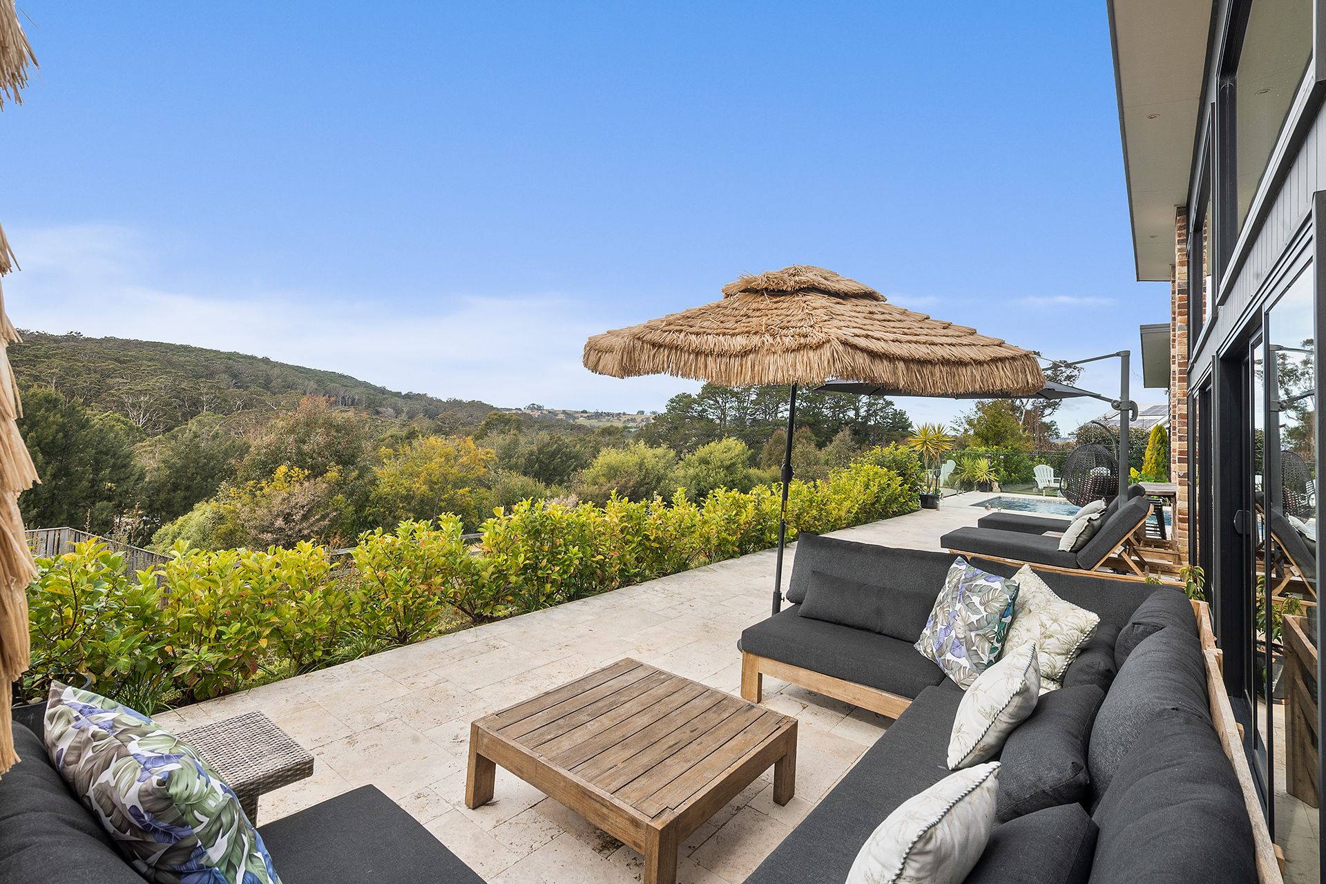 Retreat to the luxurious master wing featuring a walk-in robe, designer ensuite, and a stunning outdoor bath and shower set privately beneath the stars. A nursery or fifth bedroom/study completes this restful sanctuary.