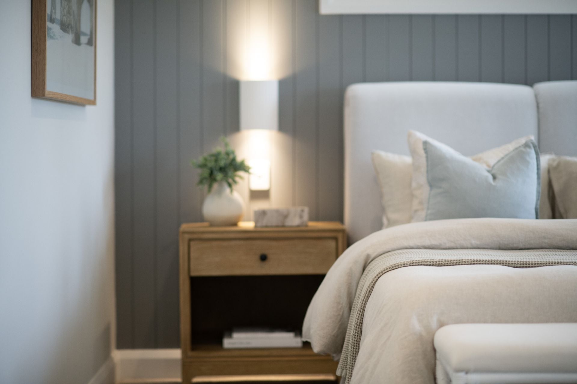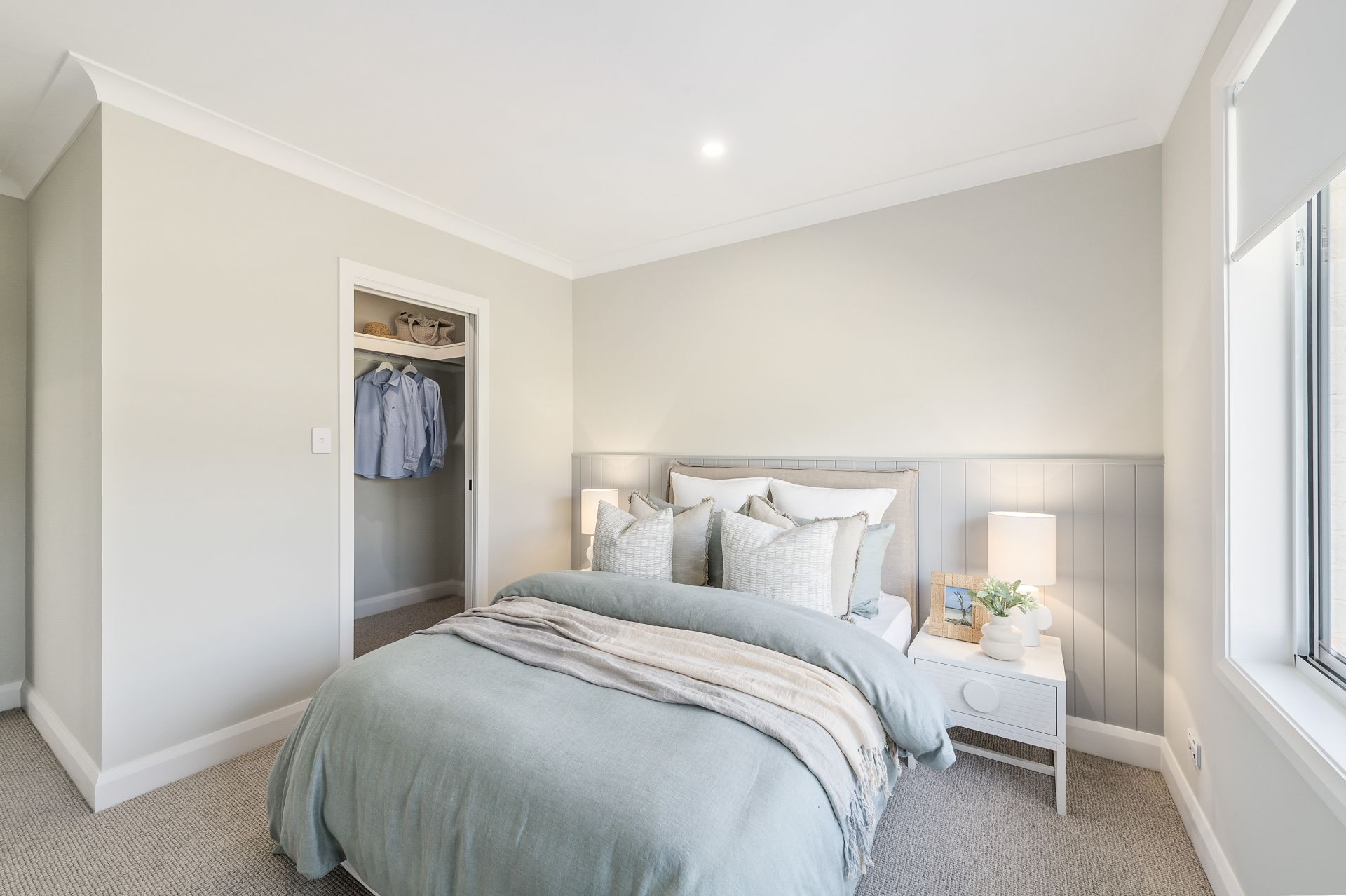 Privately positioned at the front of the home, the master suite offers a premium retreat experience. Featuring a striking VJ panel wall, plush carpets, and a custom walk-in wardrobe complete with a built-in makeup station, it delivers refined comfort at every turn. The ensuite elevates the experience further with floor-to-ceiling tiles, underfloor heating, a double vanity, and a separate WC a showcase of quality and design excellence.