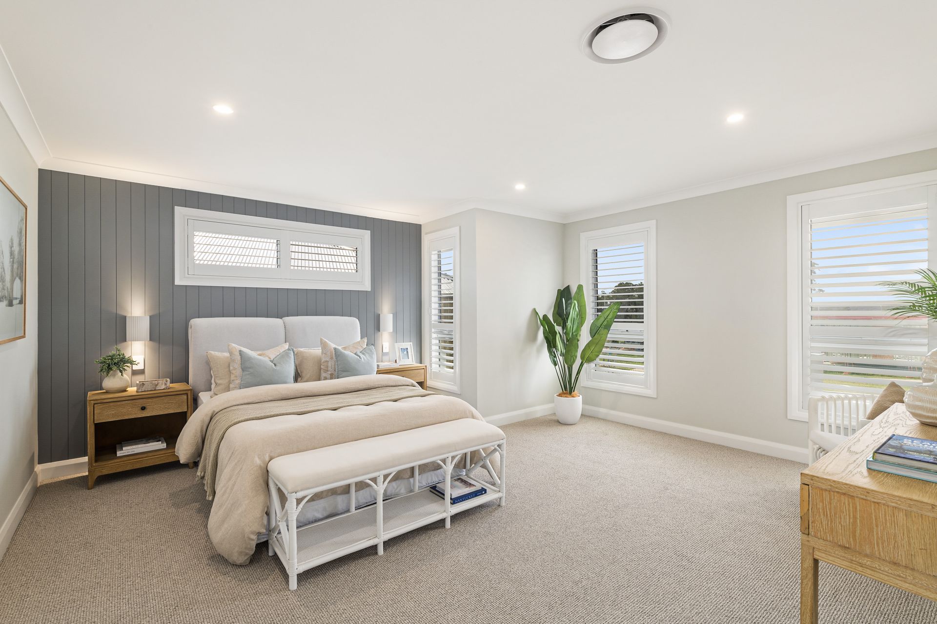 – Elegant plantation shutters throughout