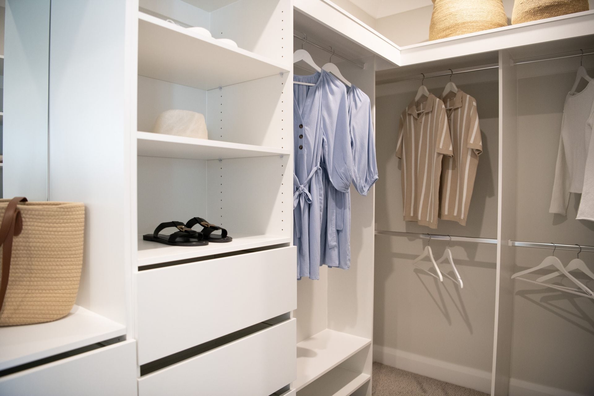 At the heart of the home is a breathtaking designer kitchen the true centrepiece of the residence. Every element reflects quality: a walk-in butler’s pantry, Fisher & Paykel appliances, and luxurious 40mm Caesarstone benchtops. Designed for both beauty and functionality, it flows seamlessly into the light-filled open-plan living and dining area, thoughtfully oriented to the north to capture all-day natural light.