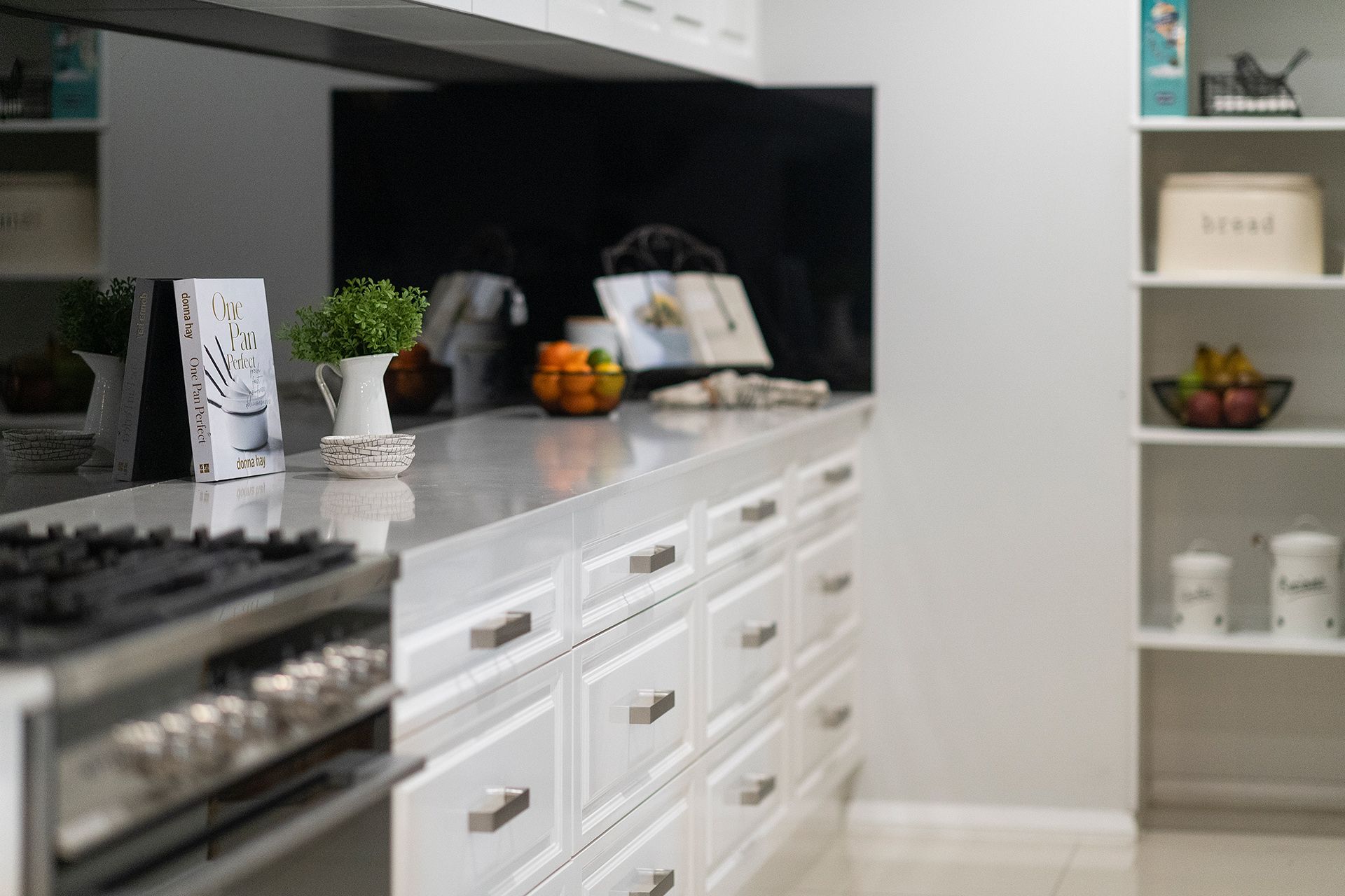 – Designer gourmet kitchen featuring 20mm Caesarstone island breakfast bar, walk in pantry, stainless steel appliances, gas cooking and abundant storage – ideal for the passionate home chef.