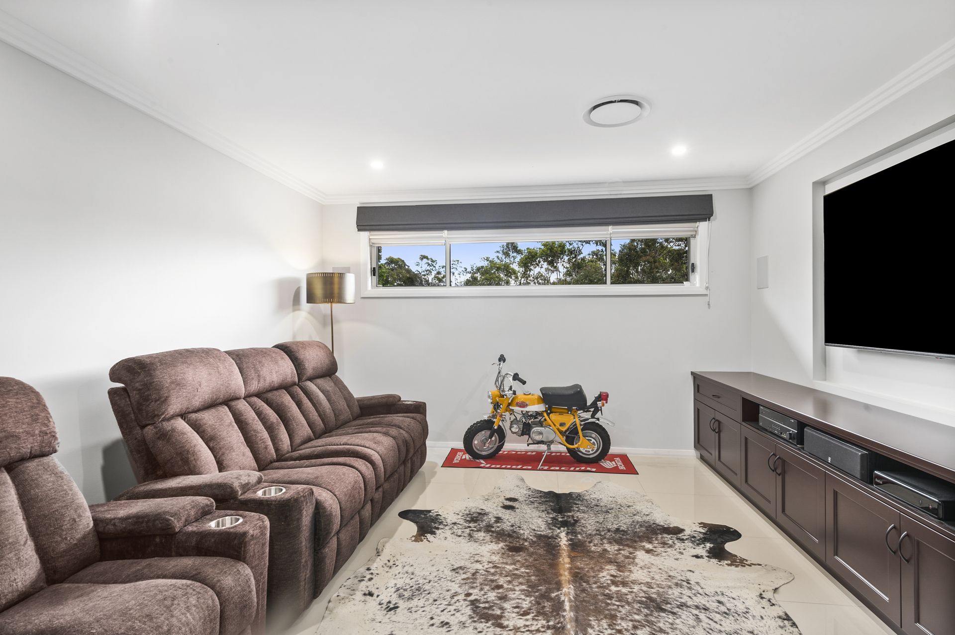– Media room complete with integrated Bose Hi-Fi sound system for the ultimate entertainment experience and a rectangular window with views to rural vistas