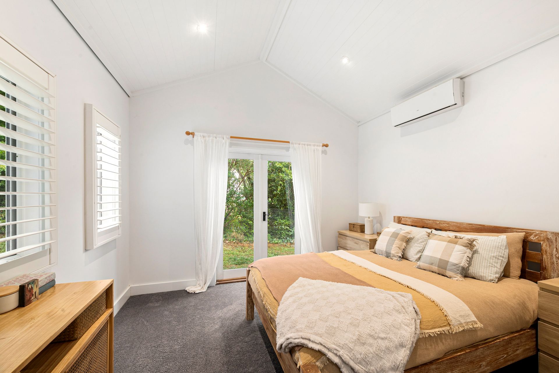 – Master bedroom with vaulted ceilings, walk-in robe (built-in shelving), sleek ensuite, and reverse cycle air conditioning