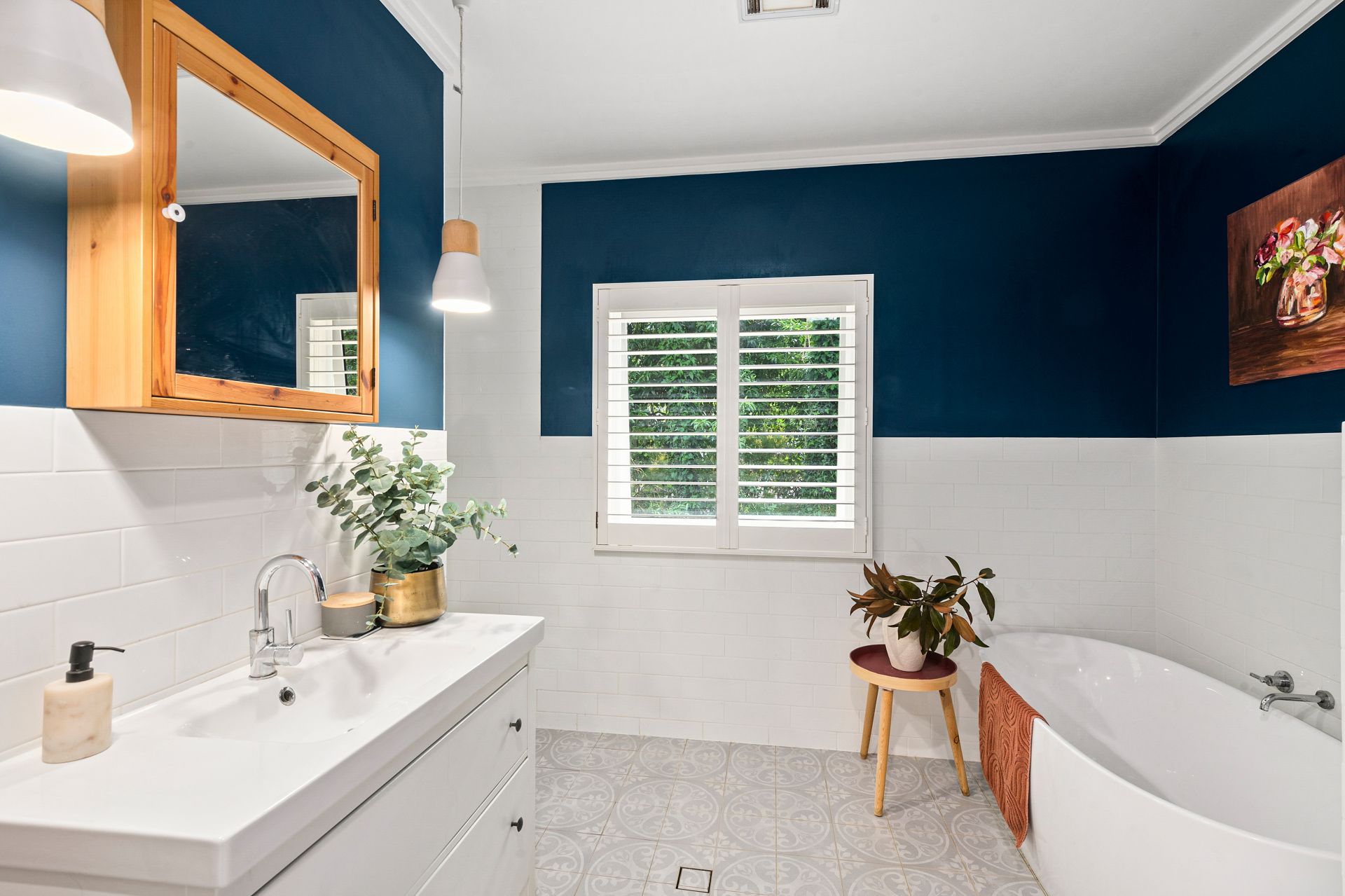 Positioned privately on a generous 1,225sqm block, the home sits behind a charming white picket fence, with a side driveway. A series of detailed brick steps and retaining walls lead through manicured lawns to a covered entry, where a timber and glass front door framed by a security screen welcomes you inside. Step into a wide hallway lined with bamboo flooring that flows throughout the main living areas, complemented by quality carpets and plantation shutters in the bedrooms and media room for added comfort and privacy. At the front of the home, a light-filled study enjoys tranquil views over the garden.