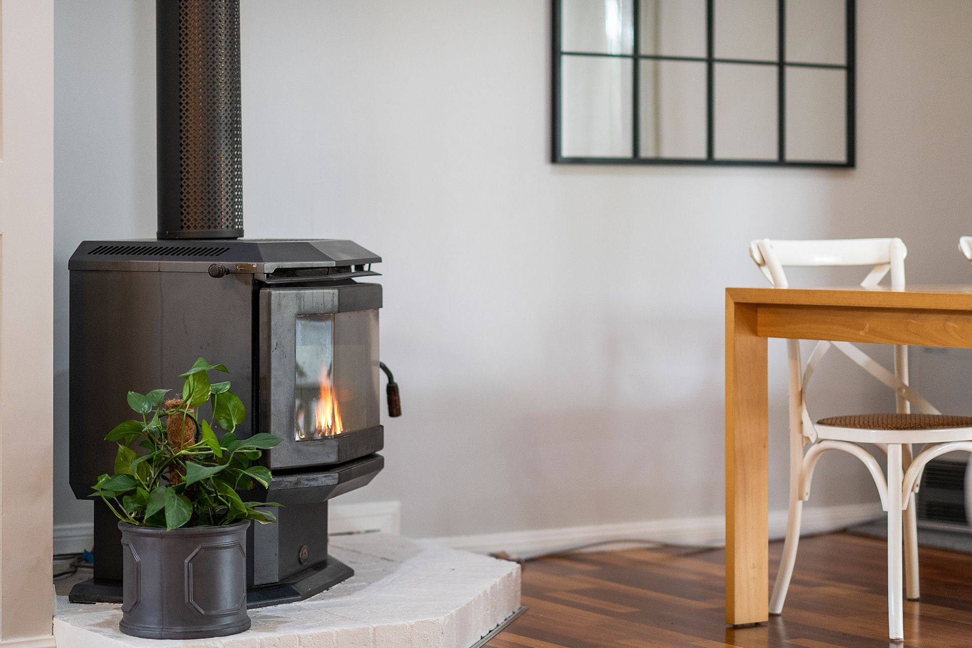 – A spacious central living area features a slow-combustion wood fireplace that adds warmth and ambience throughout the cooler months.