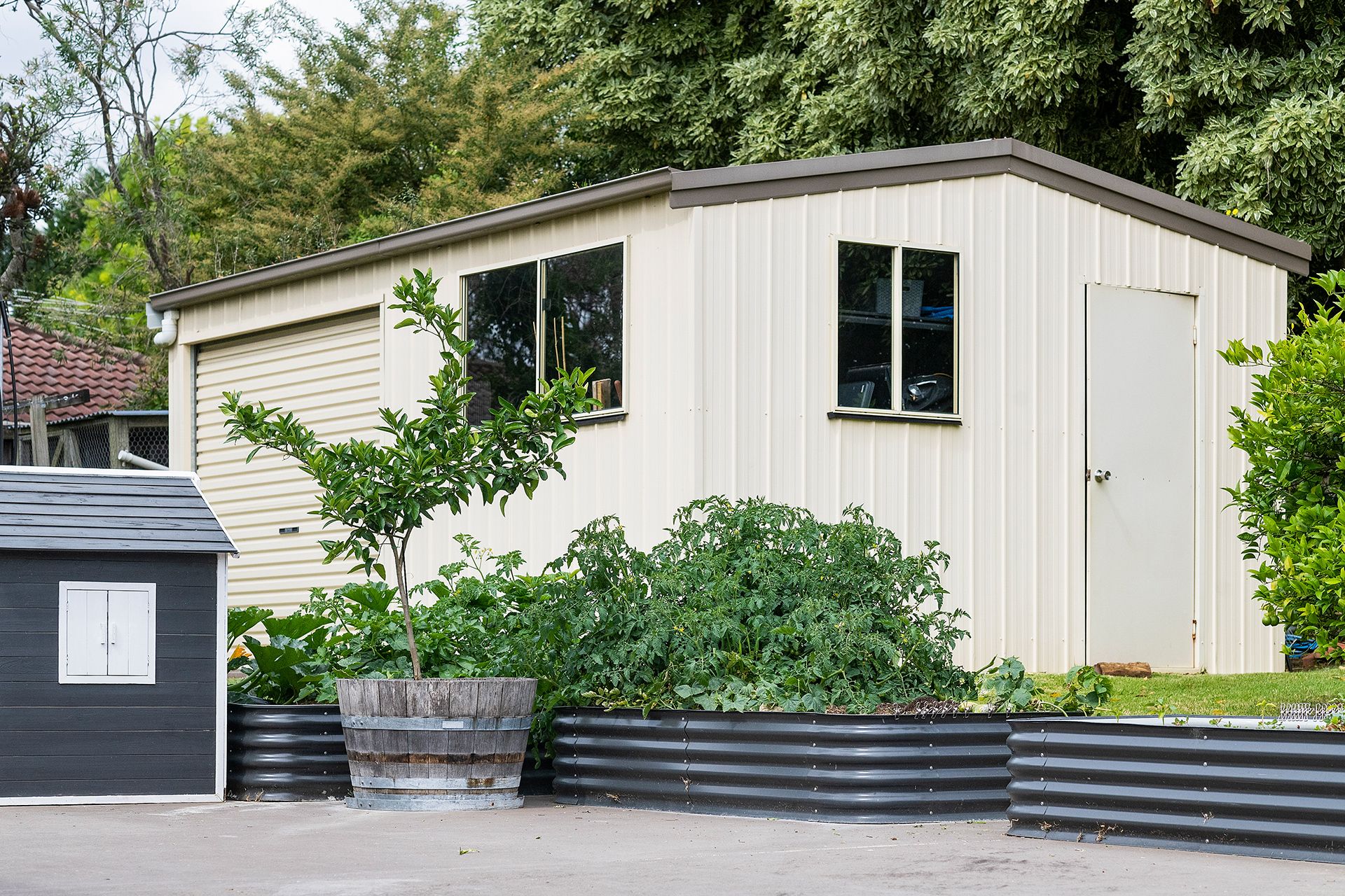 – A Colorbond shed with a roller door delivers valuable extra storage and workshop options.