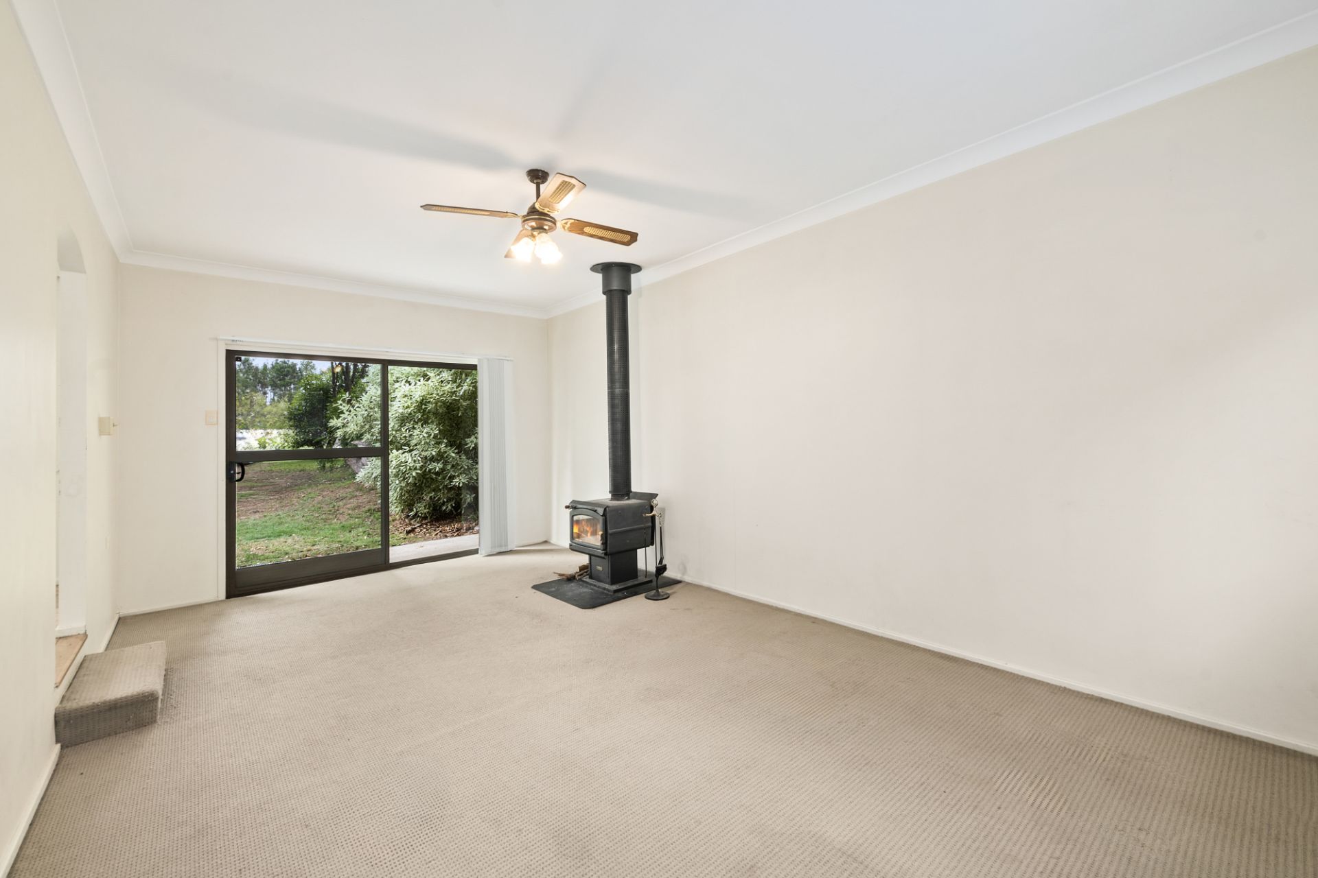 – Freestanding wood fireplace and ceiling fan in lounge room for added comfort