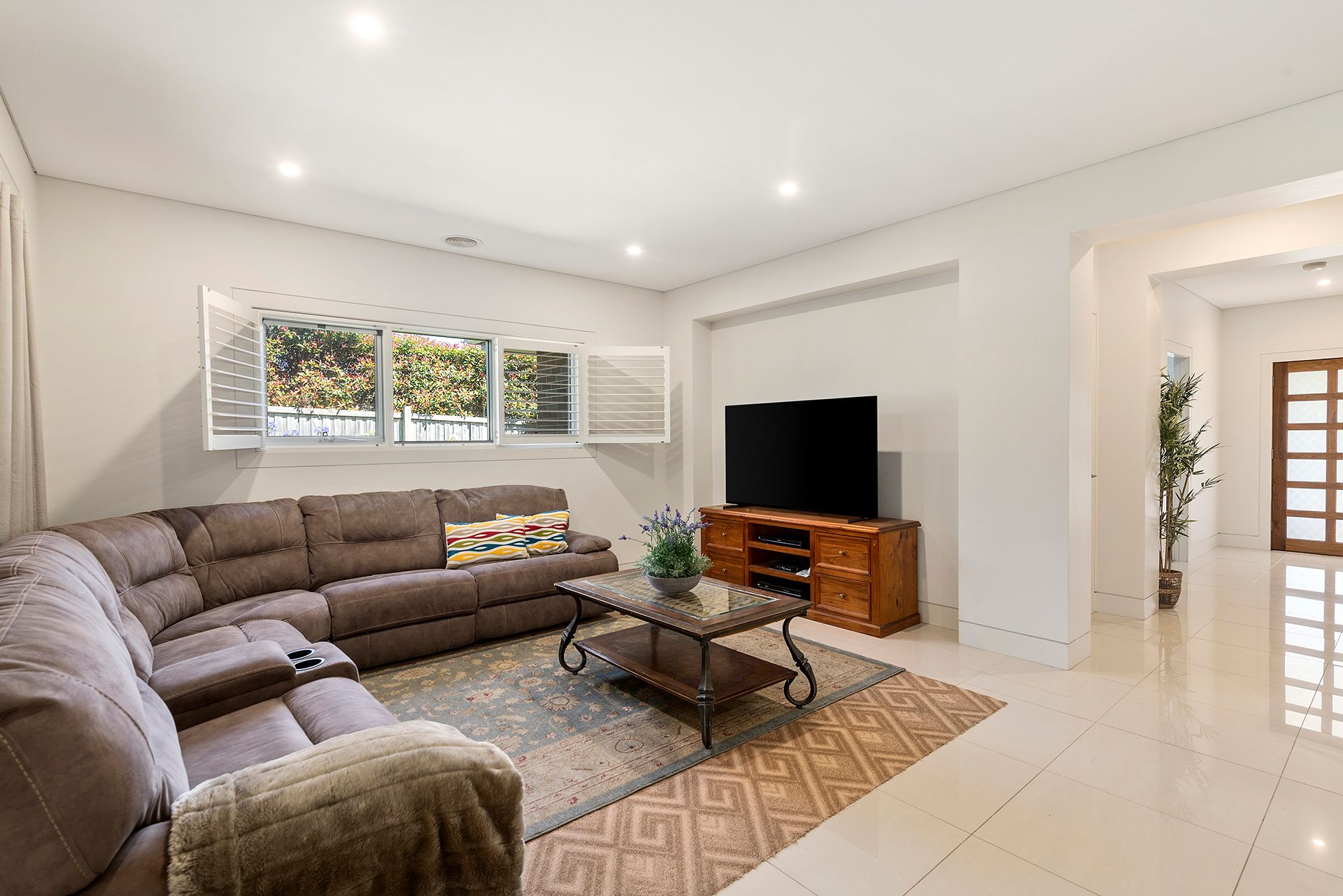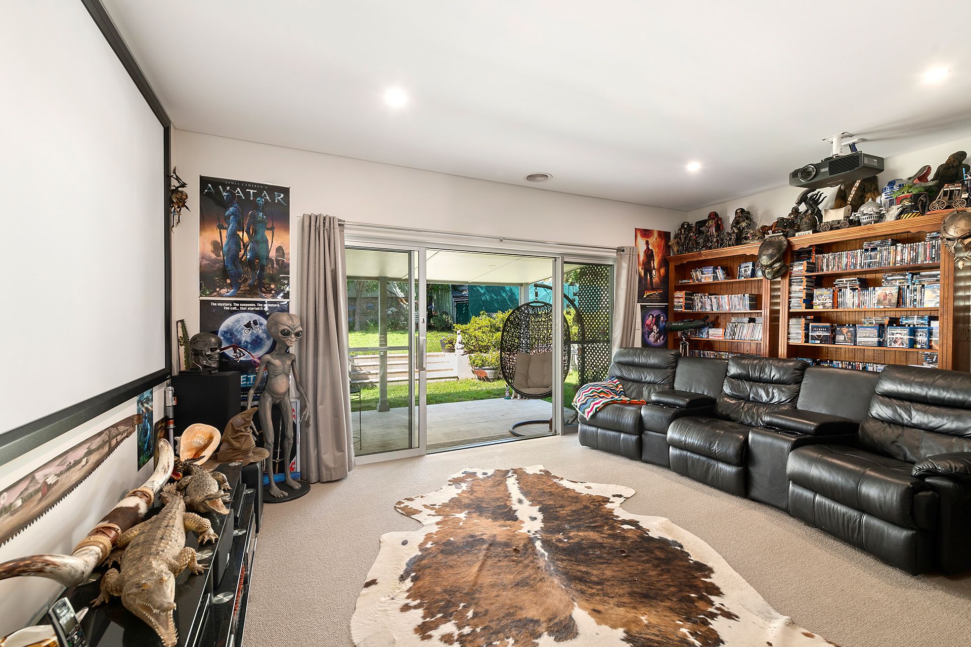 All additional bedrooms are generously proportioned and feature ample built-in robes, with one offering its own external access. White plantation shutters throughout enhance the home’s clean, modern aesthetic while providing privacy and light control. A further bright and spacious living area offers a peaceful retreat, ideal for reading or relaxation.