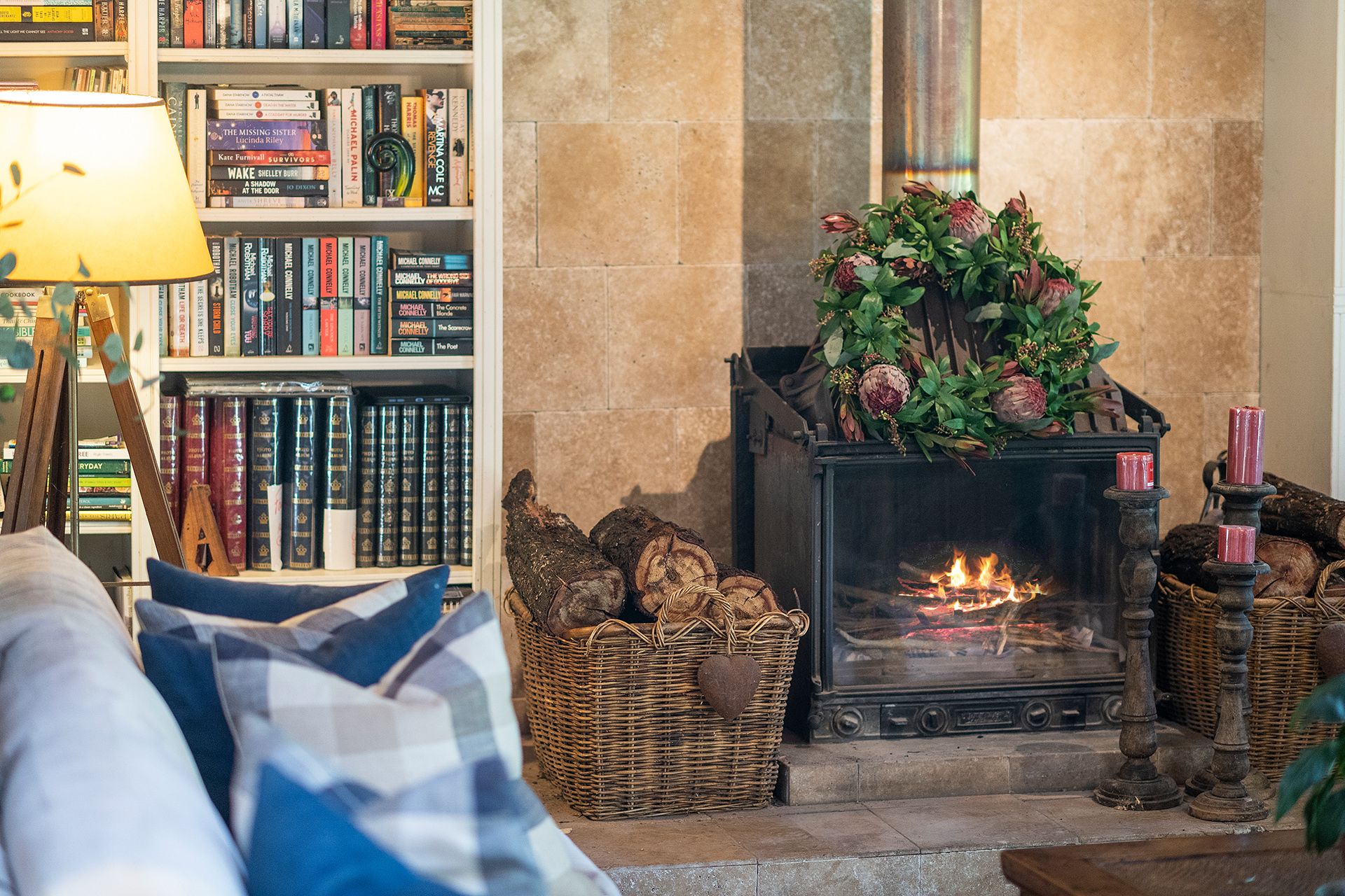 • Slow-combustion wood fire, R/C air-con & ceiling fans