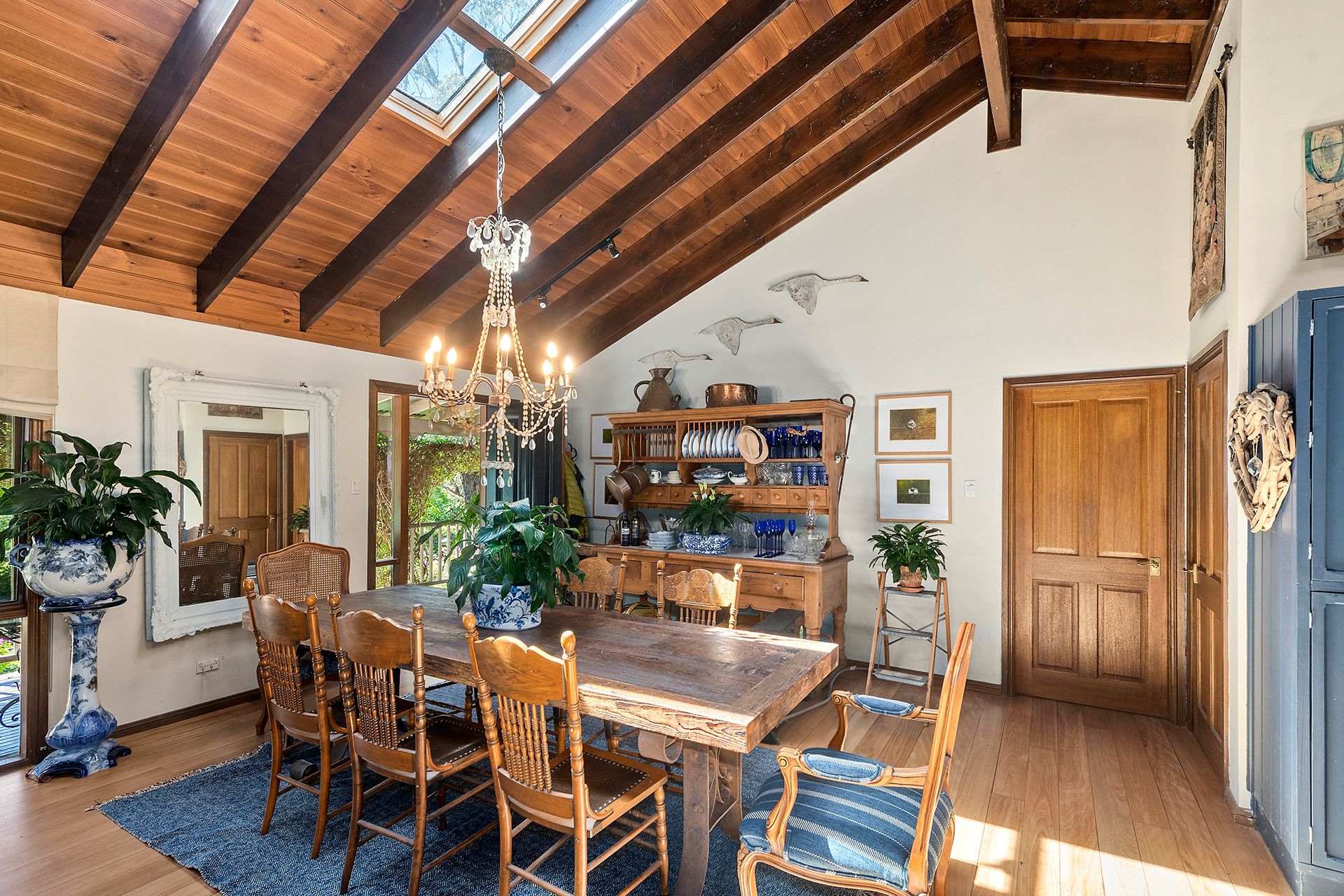 • Vaulted timber-lined ceilings & skylights