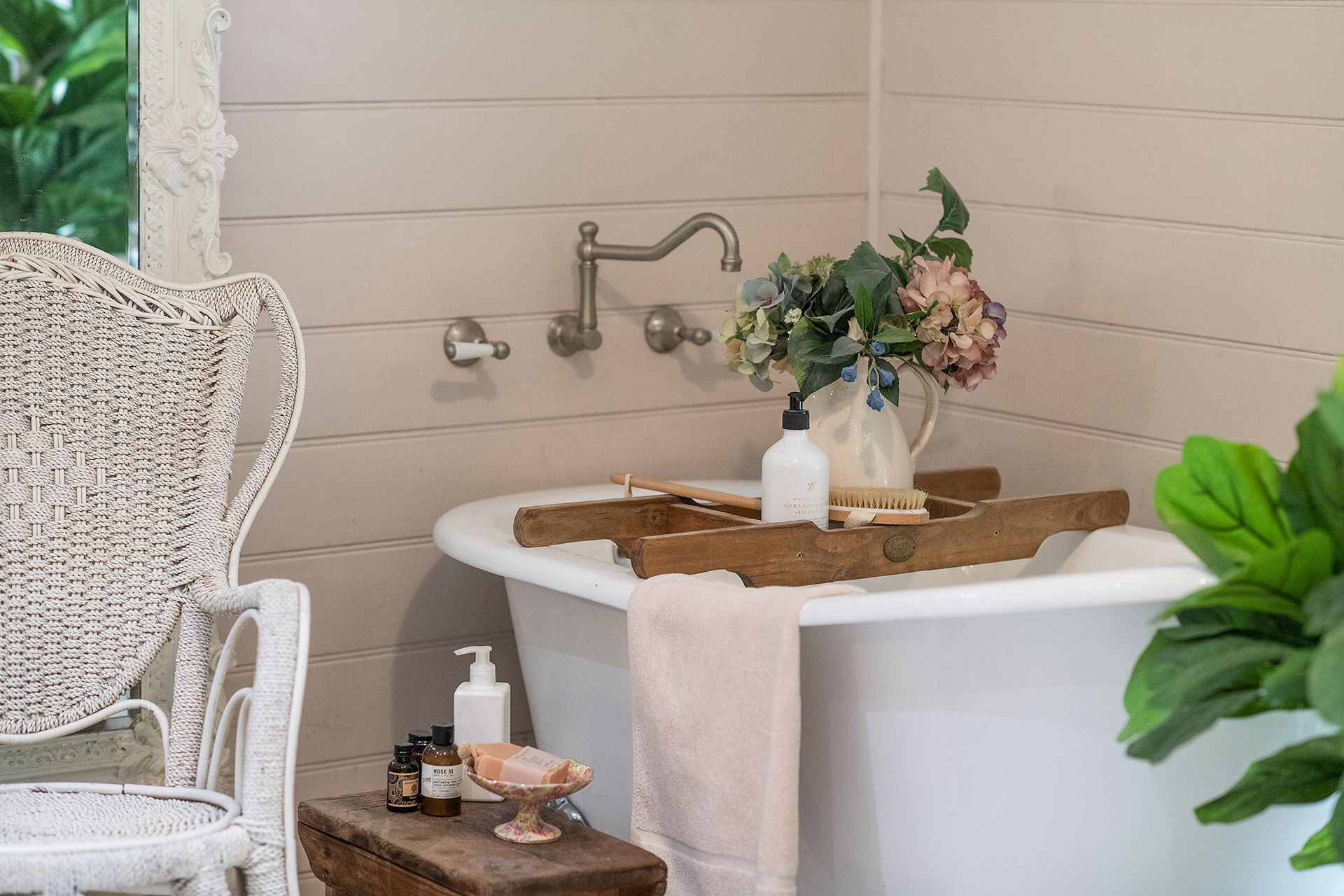 • Large bathroom with freestanding bath + powder room