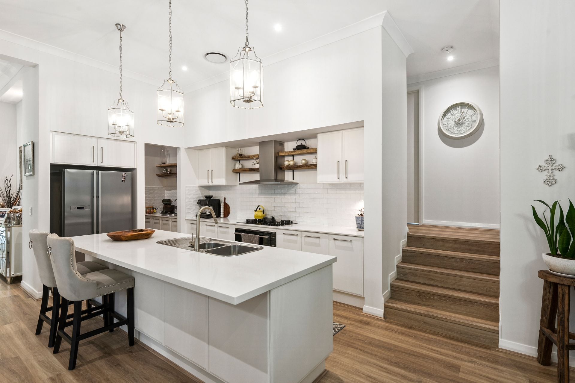 Designed for both entertaining and daily living, the heart of the home is the stunning open-plan kitchen, showcasing a substantial stone-topped island, 900mm stainless-steel gas range with electric oven, and a luxury butler’s pantry. This space flows effortlessly into expansive dining and family areas with a slow-combustion fireplace, while a separate formal lounge provides a warm and inviting retreat.