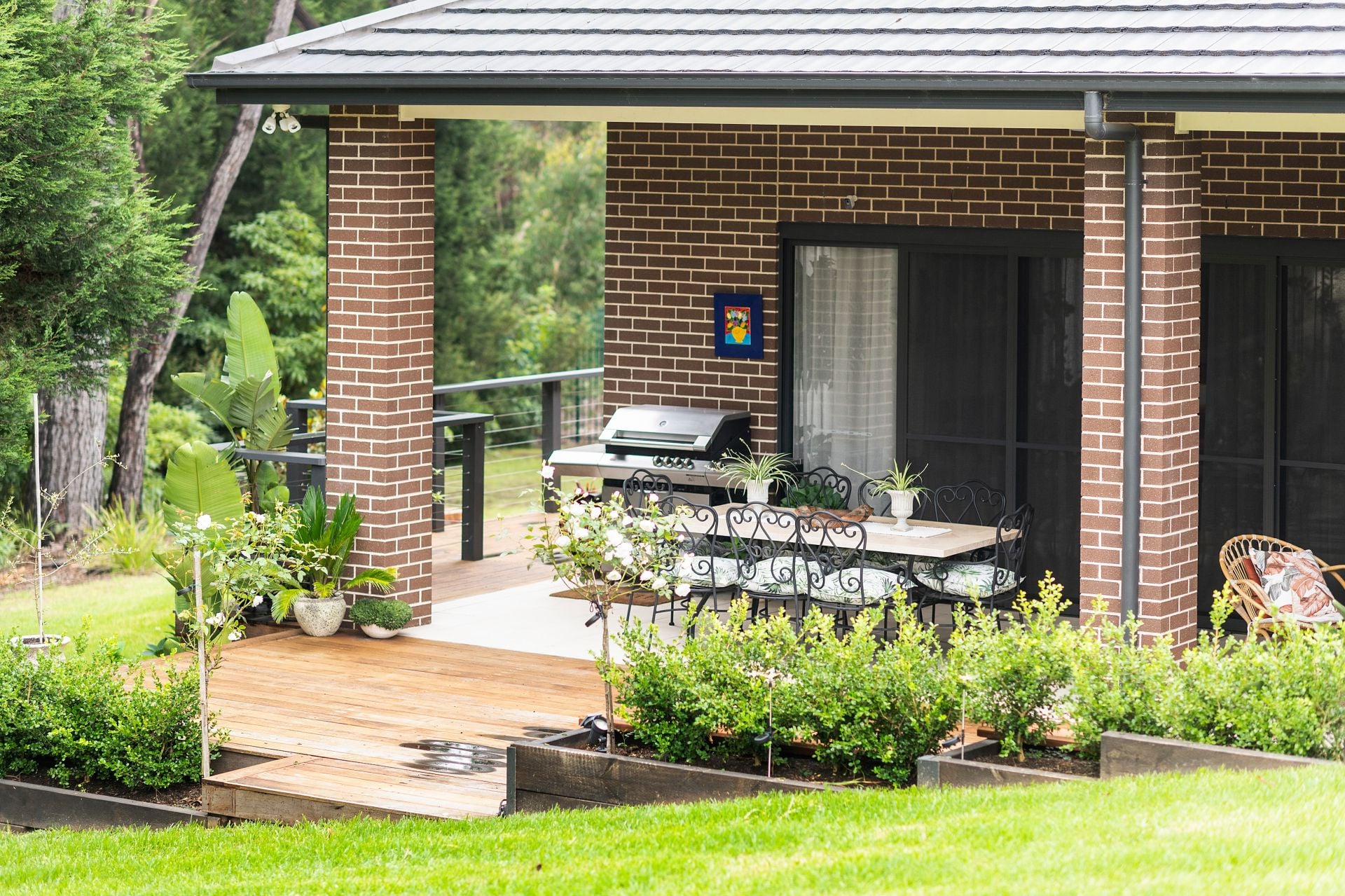 Outdoor living is equally impressive, with a large tiled and covered alfresco area complete with gas point for BBQs, ideal for year-round entertaining. A north-facing deck, water tanks, greenhouse, and beautifully established gardens further enhance the home’s lifestyle appeal.